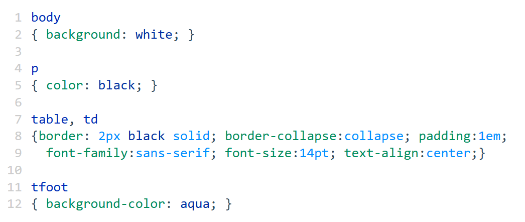 Tables are a widely-used way of organizing and presenting tabular information on the Web. Let's use a table to present common elements for setting up tables: